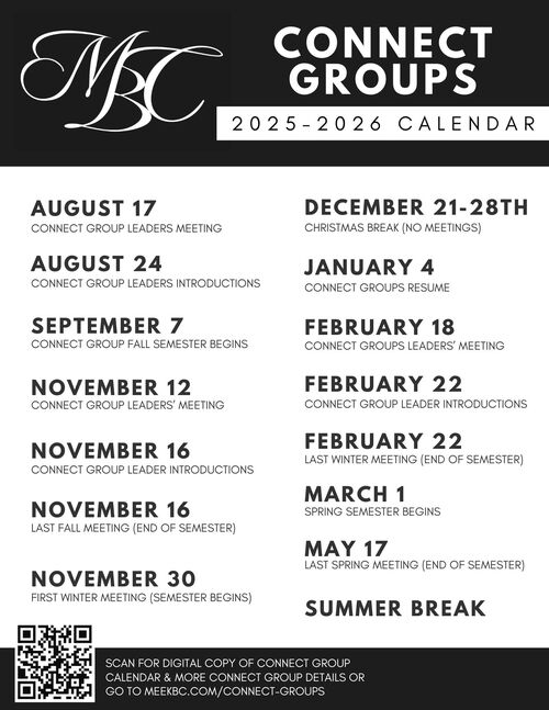 Below is the calendar for Connect Group Semester dates. Check back soon for details as Group Leaders and Locations for Fall Semester will be published by August 24th! You'll be able to meet group hosts, find a group and time that works for you, and get plugged in!
